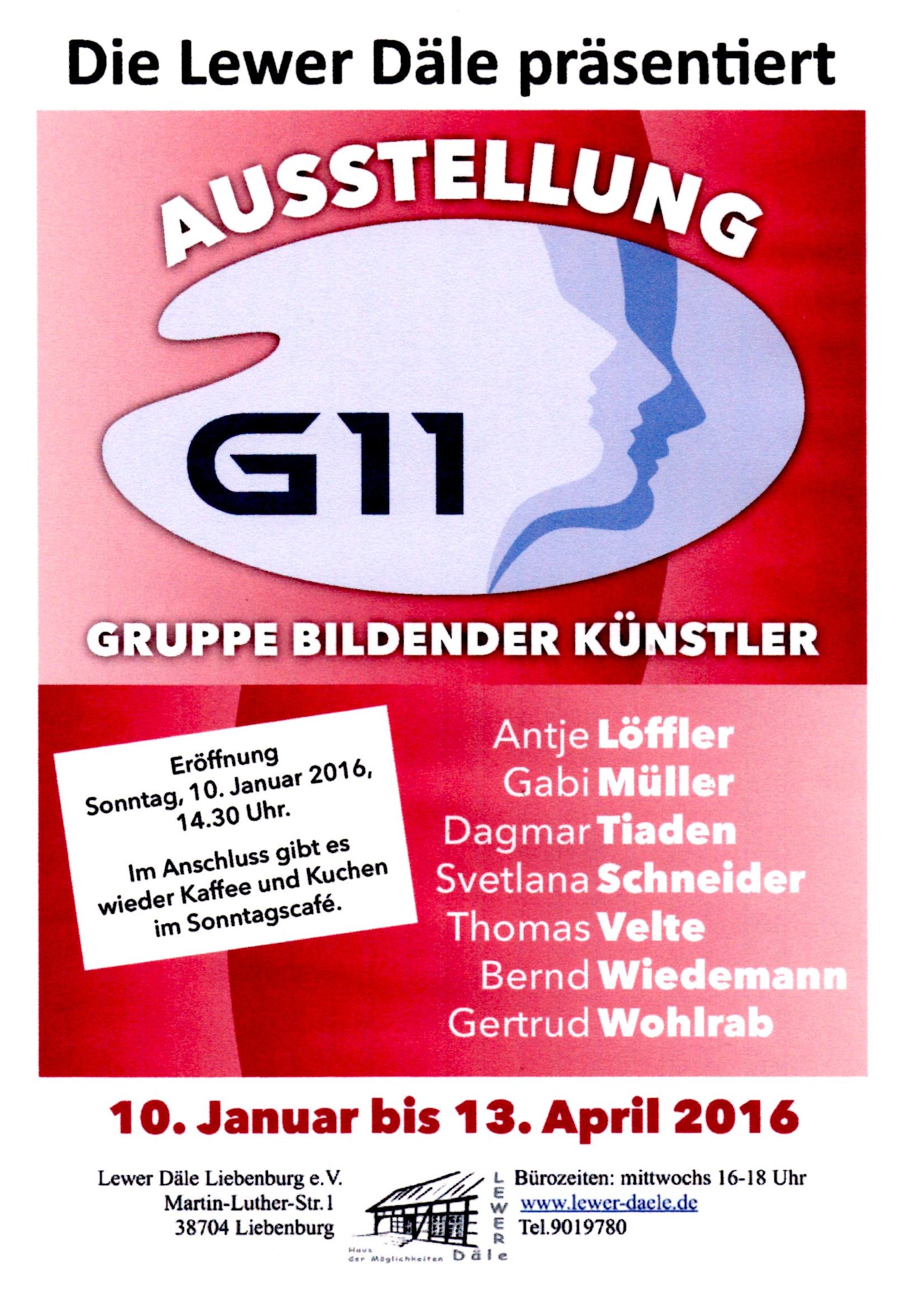 Gemeinschaftsausstellung mit 14 weiteren Kuenstler:innen, Die damit verbundene Vielfalt ist fuer Besucher sehr attraktiv. Kunst fuer alle ist eine Verkaufsausstellung mit preiswerten Bildern, also Kunst fuer jedefrau und jedermann. Kunst, die bezahlbar ist. Die Galerie befindet sich in einer denkmalgeschuetzten Fabrik aus dem Jahre 1906.